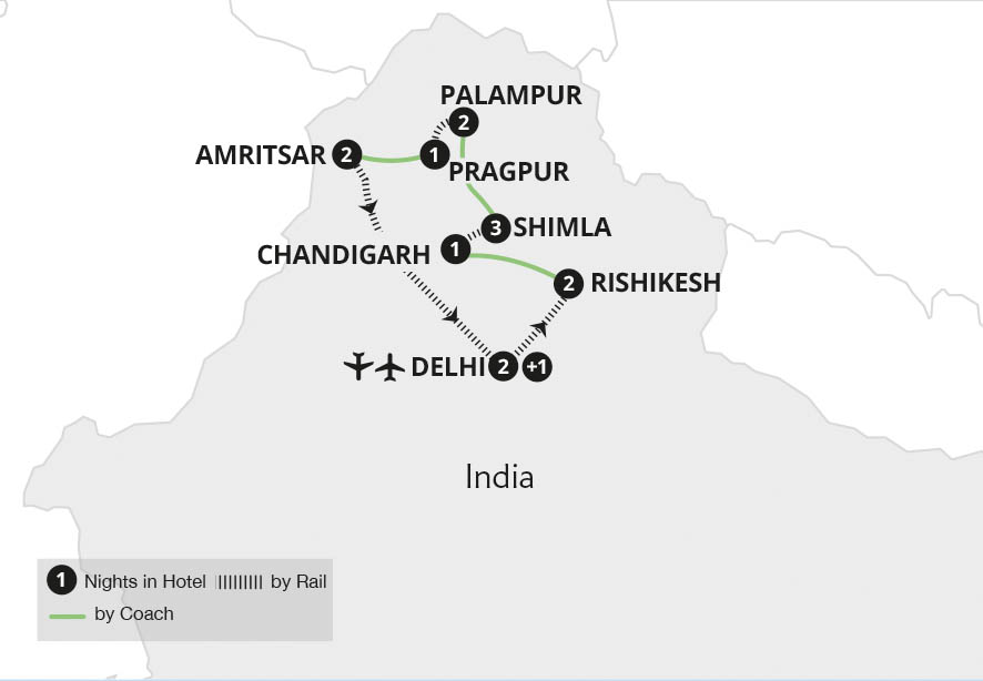 Retrace the steps of Indian princes aboard the Maharajas' Express - one of the world's most luxurious trains. Starting and ending in Delhi, this incredible voyage of discovery visits the former colonial summer capital of Shimla before showcasing spellbinding Amritsar as we witness the Wagah Border Ceremony and the Palki procession at the Golden...