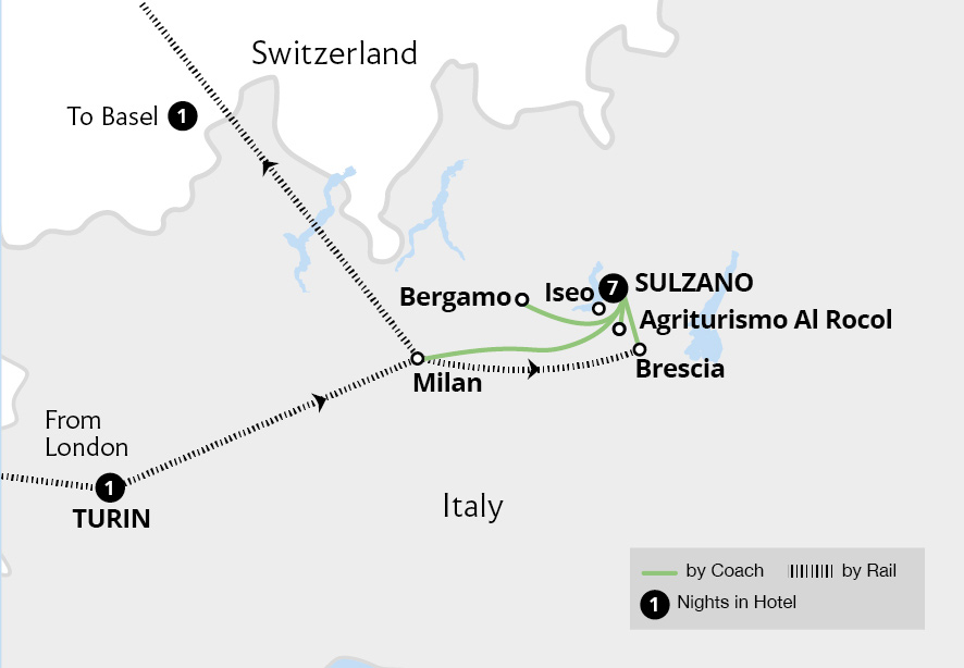 Dappled with charming medieval villages, undiscovered Lake Iseo boasts world-class food and drink. Taste the exquisite flavours of the region during a sumptuous dinner and wine-tasting of Italy's acclaimed sparkling wine at a Franciacorta winery and while sampling seasonal produce during a scenic journey aboard the 'Train of Flavours'. Savour...