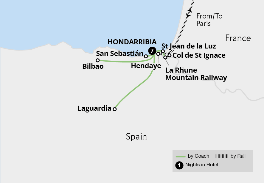 Uncover the gems of Spain and France's Basque Country from a grand base, a fortified castle in medieval Hondarribia, a picturesque town with a global reputation for great food. This gastronomy-packed tour includes a tour of San Sebastián with a sampling of pintxos at lunchtime, as well as entry into the Guggenheim Museum in Bilbao. Take a...