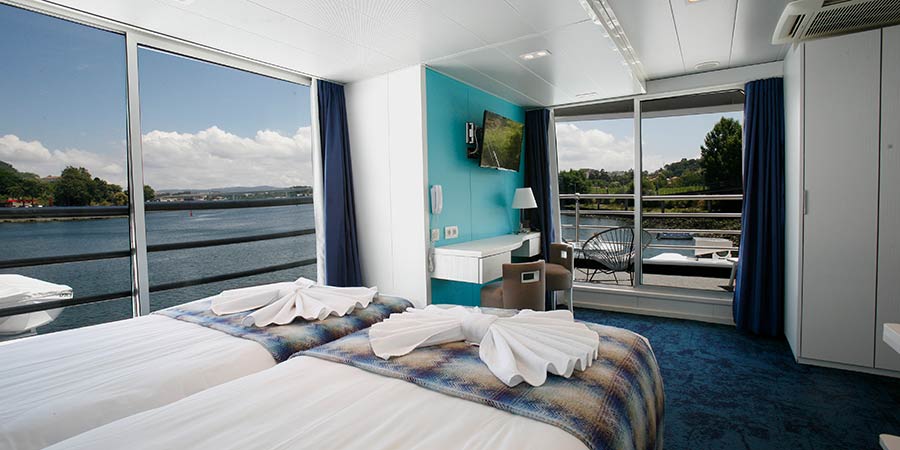 Situated on the highest deck possible, these cabins enjoy the best views on board with panoramic windows and a private terrace allowing you to make the most of the passing landscapes. Also included is a choice of double or twin beds, plus a flat-screen TV, individual climate control, en-suite bathroom with shower and W.C, hairdryer, direct dial telephone and in-room safe.