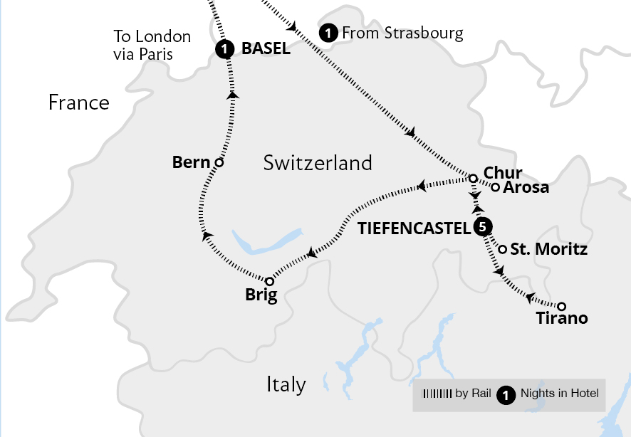 Soak up the atmosphere in the popular mountain resort of St Moritz, explore historic Chur and journey on the striking Arosa Line.